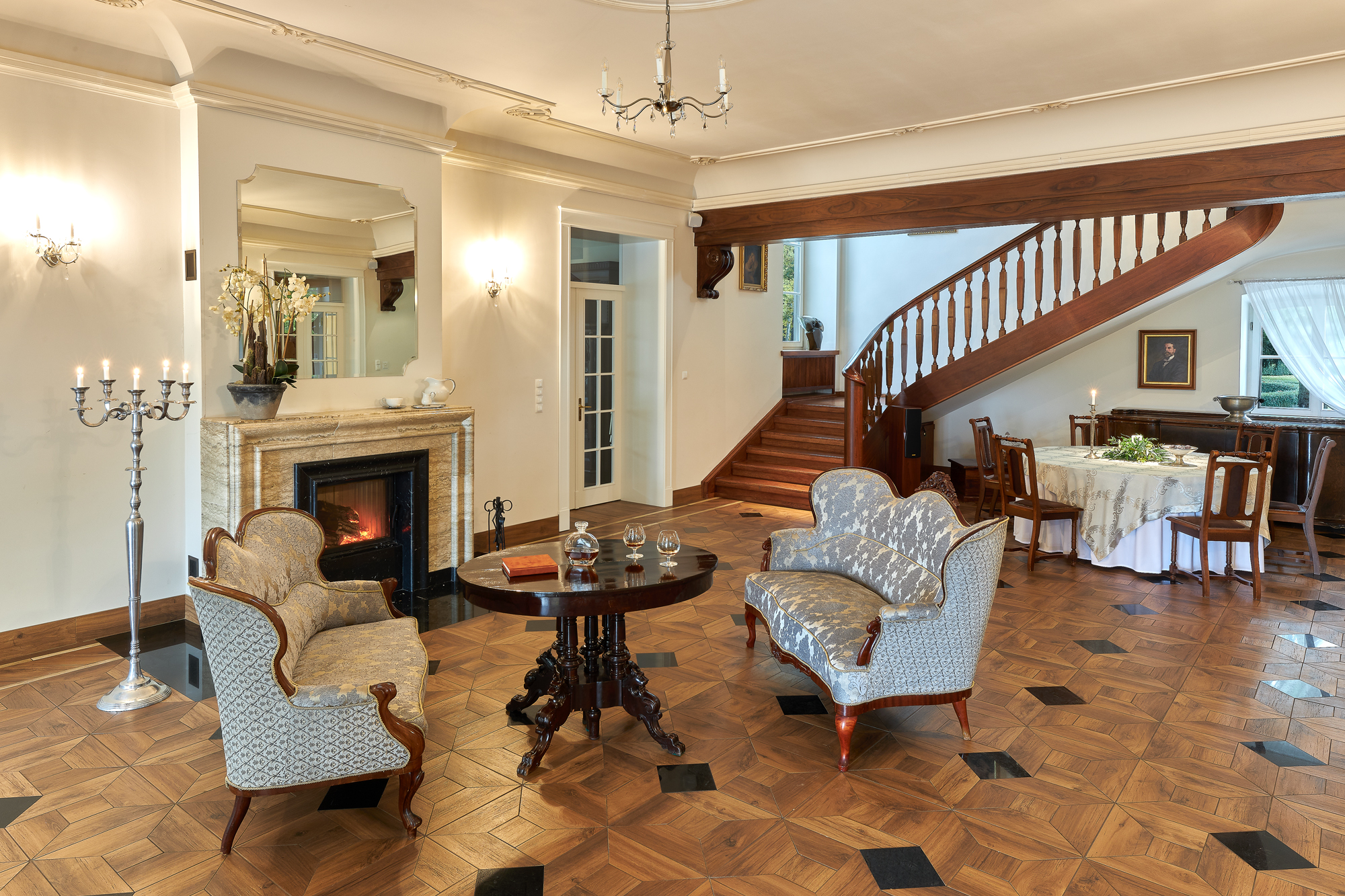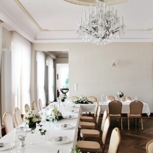 Nowo odrestaurowany, stylowy pałac, jest idealnym miejscem do celebrowania uroczystości firmowych i prywatnych. Ich organizacja możliwa jest zarówno w eleganckich i kameralnych wnętrzach pałacu, jak i na terenie zabytkowego 7h parku krajobrazowego, otulającego pałac.